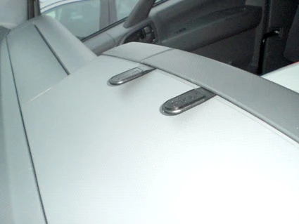 Press the thin end of the enclosed gap openers into the gap between the dashboard and center console panel frame, to widen the gap. Use the enclosed alcohol pad to clean the area where the ProClip is to be installed. Peel off the cover of adhesive tape on the ProClip.