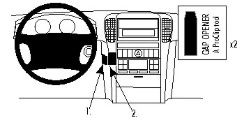 Press the two gap openers into the gap between the control panel and the surrounding frame above and below where the ProClip will insert. Press the right part of the ProClip into the gap between the gap openers. Pull out the gap openers.