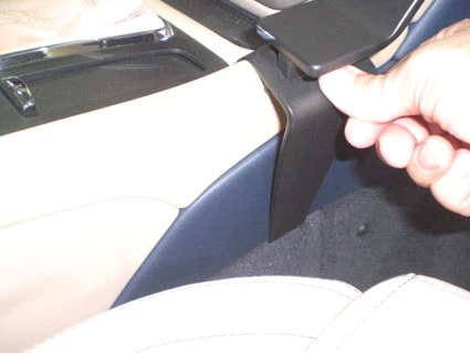Press until the angled edge on the lower part for the ProClip hooks around the console sidewall edge. Use your finger to press the mount towards the console sidewall to make sure the angled edge is hooked all the way around the console edge.