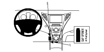 Use the enclosed alcohol pad to clean the area where the ProClip is to be installed. Press the thin end of the enclosed gap opener into the gap between the console edge and the center console panel frame, to widen the gap Peel off the cover of adhesive tape on the ProClip. Press the angled edge on the right side of the ProClip into the gap above the gap opener.