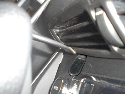 Press the thin end of the enclosed gap opener into the gap between the center console panel frame and the padded part of the dashboard, to widen the gap. Press the angled edge on the upper part of the ProClip into the gap next to the gap opener. Pull out the gap opener. 2 press the gap opener into the gap betwen the air vent panel frame and the center console panel frame. Place your fingers onto the lower part of the ProClip as shown in the picture.