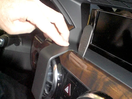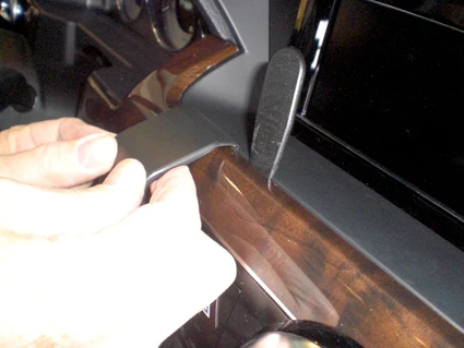 Press the gap opener into the gap between the upper dashboard ledge and the panel surrounding the air vents. Pull the upper part of the ProClip so it flexes upward and hook the angled edge into the gap next to the gap opener.