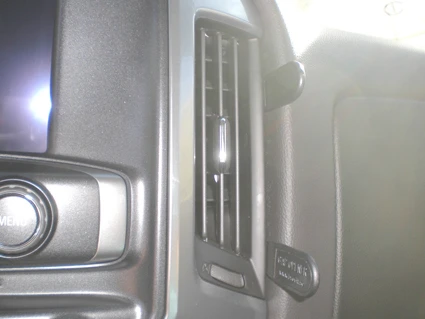 Press the thin end of the enclosed gap openers into the gap between the air vent frame and the padded part of the dashboard, to widen the gap.