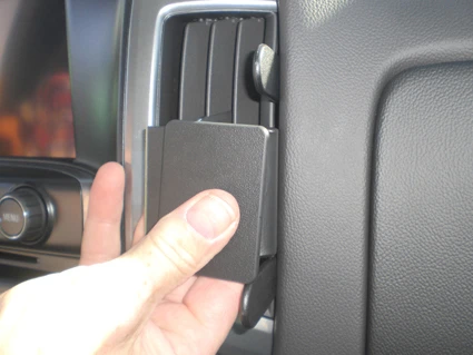 Press the thin end of one gap opener into the gap between the air vent frame and the frame surrounding the panel, to widen the gap. Press the thin end on the left side of the ProClip into the gap below the gap opener. Pull out the gap opener.