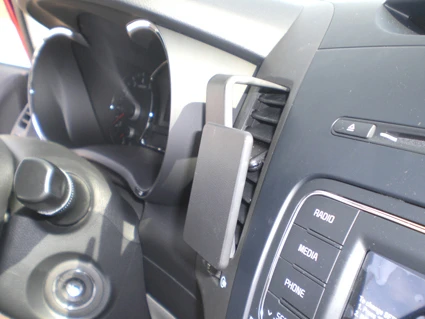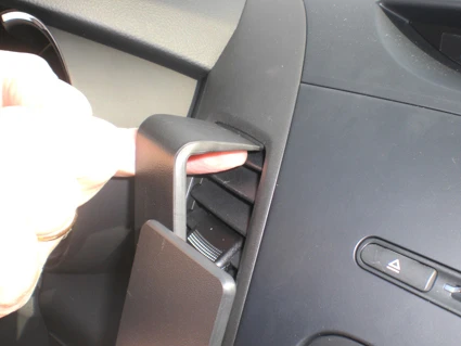 Press the thin angled edge on the upper part of the ProClip into the seam/gap between the air vent and the surrounding panel.