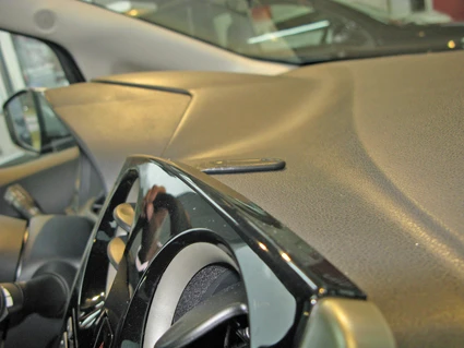Press the enclosed gap opener into the gat betweent he dashboard and the edge on the upper side of the center console, to widen the gap. Use the enclosed alcohol pad to clean the area where the ProClip is to be installed. Remove the adhesive tape covers on the ProClip.