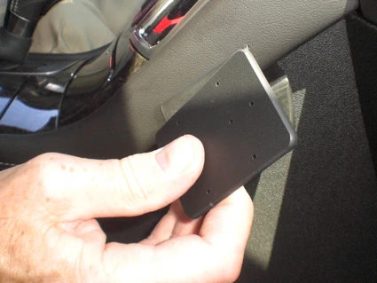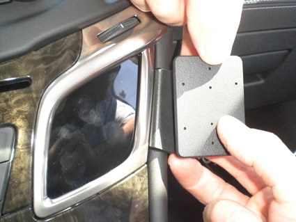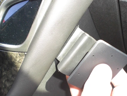 Please your index finger behind the ProClip and pull it towards you. Then hook the angled edge over the console edge and into the gap between the console edge and the center console trim.