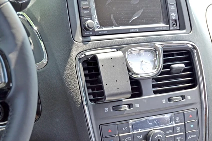 Use the enclosed alcohol pad to clean the area where the ProClip is to be installed. Remove the adhesive tape cover on the ProClip. Insert the upper angled edge of the ProClip into the seam between the frame surrounding the vent and the inside of the vent.