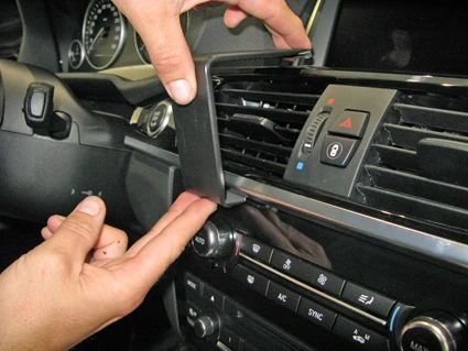 Press the angled edge on the lower part of the ProClip into the gap between the frame surrounding the air vent and the control panel.