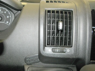Use the enclosed alcohol pad to clean the area where the ProClip is to be installed. Press the thin end of the enclosed gap opener into the lower part of the gap between the frame surrounding the air vent and the dashboard, to widen the gap. Peel off the adhesive tape covers on the ProClip.