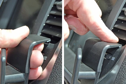 Pull the upper part of the ProClip upward so the angled upper edge hooks around the lower edge of the air vent. Make sure the ProClip is properly attached to the air vent edge by pressing the top downward.