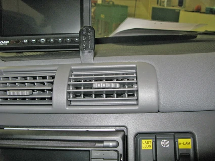 Press the angled lower part of the ProClip into the gap on the bottom side of the frame surrounding the air vent and the dashboard.