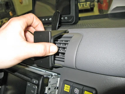 The ProClip is easy to install. The bracket simply snaps into place in gaps in the dashboard, you do not need to drill holes, not use special tools or not dismantle the dashboard. Made in black ABS plastic. Comes with detailed installation instructions. The mounting plate is equipped with predrilled holes which make the installation of equipment on the ProClip easier. The holes suit all Brodit holders and other products with standard holes, the hole pattern constists of one set of AMPS-holes as well as two sets of double-holes placed in different height.