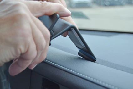 Pull the lower part of the ProClip towards you so that the angled lower edge hooks around the dashboard edge.