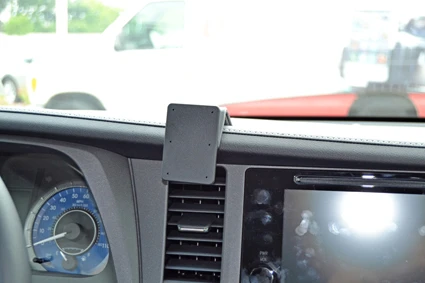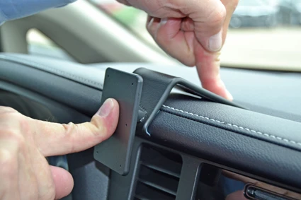 Press downward/forward on the edges of the ProClip to make sure the adhesive tape attaches properly. Notice: If the ProClip is not aligned to be above the left vent it might not remain attached securely.
