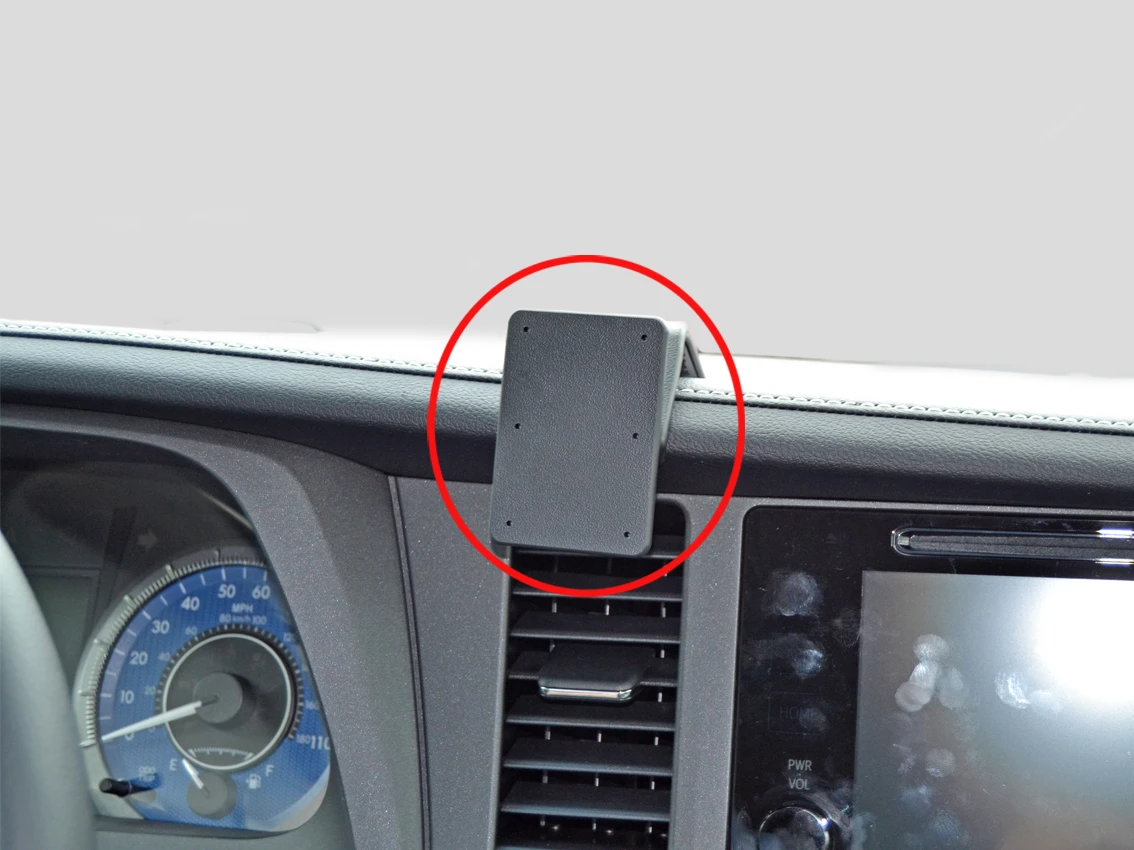 The ProClip is easy to install. The bracket simply snaps into place in gaps in the dashboard, you do not need to drill holes, not use special tools or not dismantle the dashboard. Made in black ABS plastic. Comes with detailed installation instructions. The mounting plate is equipped with predrilled holes which make the installation of equipment on the ProClip easier. The holes suit all Brodit holders and other products with standard holes, the hole pattern constists of one set of AMPS-holes as well as two sets of double-holes placed in different height.