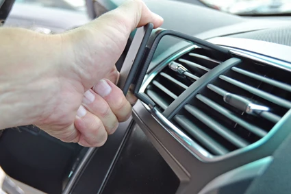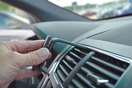 Use the enclosed alcohol pad to clean the area where the ProClip is to be installed. Remove the adhesive tape cover on the ProClip. Place the thin upper edge of the ProClip into the upper part of the air vent.