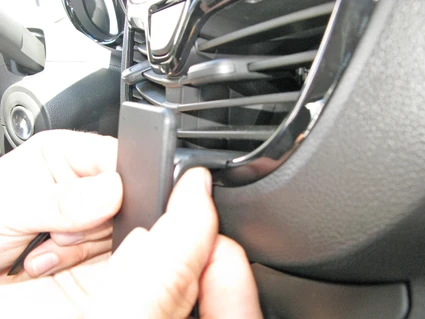 Pull the ProClip upward, flexing it so the grooved upper edge hooks into the lower edge of the air vent.