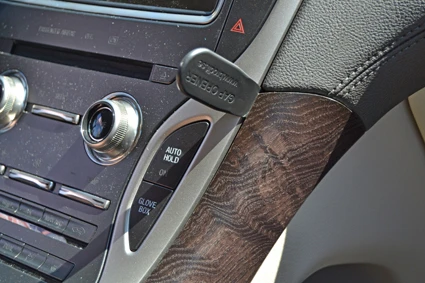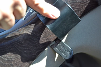 Press the thin end of the enclosed gap opener into the gap between the panel surrounding the glove box button and the right center console panel, to widen the gap. Use the enclosed alcohol pad to clean the area where the ProClip is to be installed. Remove the adhesive tape cover on the ProClip.