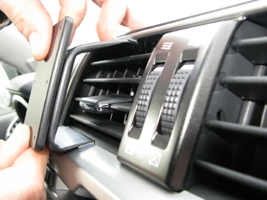 Press the lower part of the ProClip upward/forward and hook the angled edge over the frame surrounding the air vent.