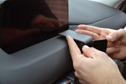 Press the upper part of the ProClip foward and hook the upper edge into the gap between the dashboard and the display.