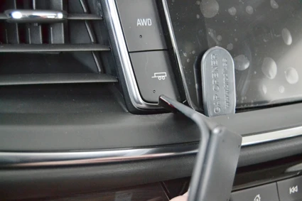 Press the gap opener into the gap between the trim and the dashboard. Pull the lower edge of the ProClip downward and hook the angled edge into the gap next to the gap opener. Pull out the gap opener.