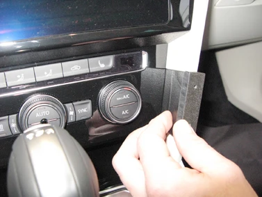 Use the enclosed alcohol pad to clean the area where the ProClip is to be installed. Press the angled edge on Part 1 into the gap between the control panel and the surrounding frame.