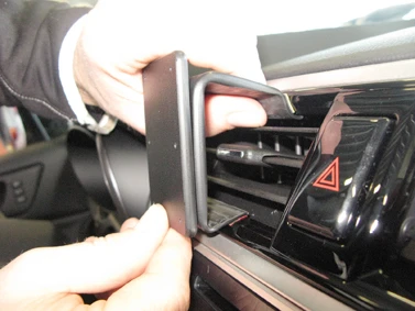 Press the lower part of the ProClip upward/forward and hook the angled edge on the lower part into the lower edge of the air vent.