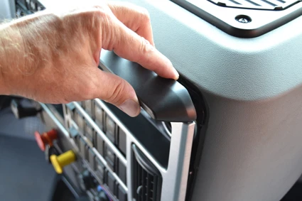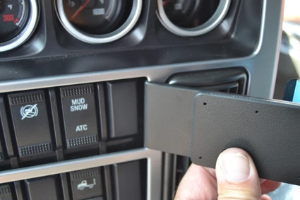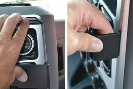 Press the front frame/panel around the instruments back into place. Hook the right edge of the ProClip over the edge of the frame/panel around the instruments.