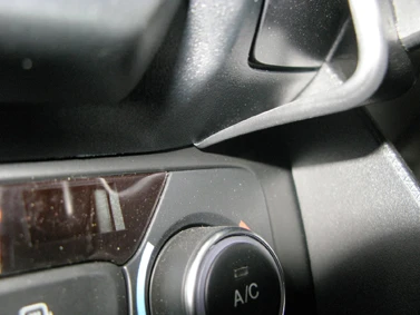 Press the thin end of the enclosed gap opener into the gap between the frame surrounding the control panel and the frame surrounding the compartment, to widen the gap. Hook the angled edge on the lower part of the ProClip into the gap next to the gap opener.