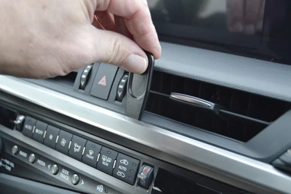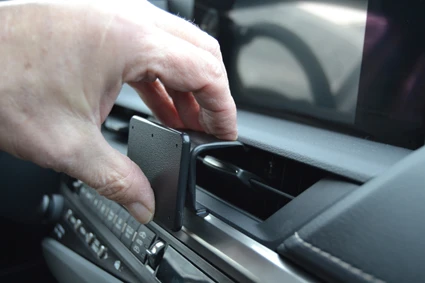 The ProClip is in place. This ProClip can be placed anywhere within the width of the air vents. If placed onto the left air vent, a device installed in this position may block the display.