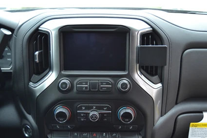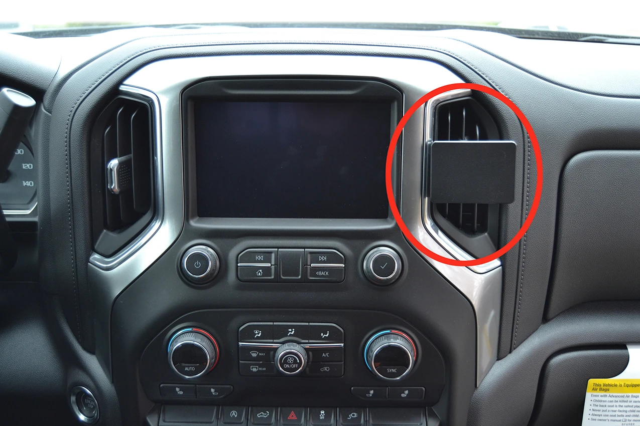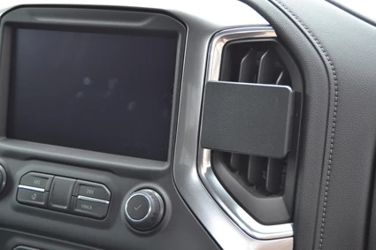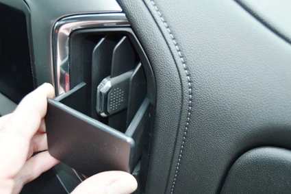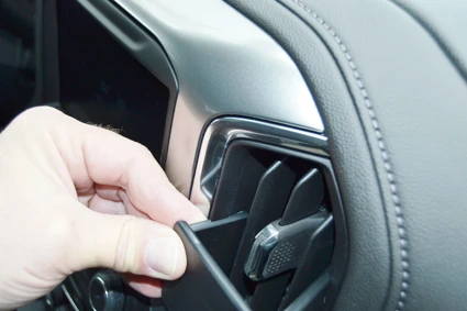 Press the ProClip to the right and and forward. Hook the notched edge on the left part of the ProClip onto the inner edge of the frame surrounding the air vent.