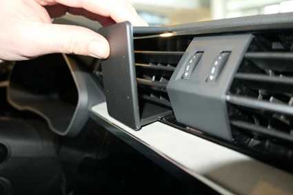 Hook the angled edge on the upper part of the ProClip under the frame surrounding the air vent.