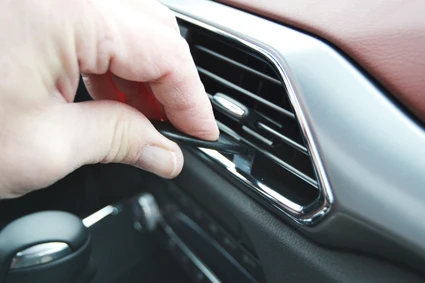 Press the thin end of the enclosed gap opener into the gap between the air vent and the surrounding frame, to widen the gap.