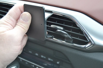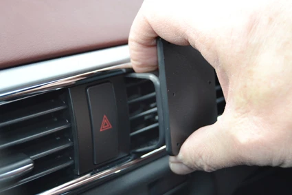 Press down on top of the ProClip. Hook the upper part of the ProClip into the gap between the air vent and the surrounding frame.