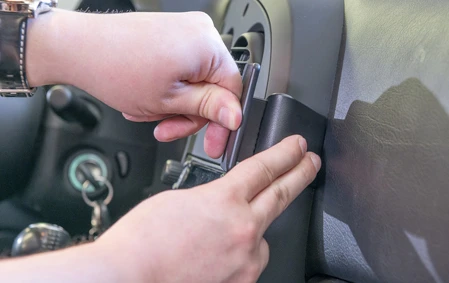 Press the ProClip to the left. Hook the left edge of the ProClip over the console frame and into the gap between the console frame and panel surrounding the vents.