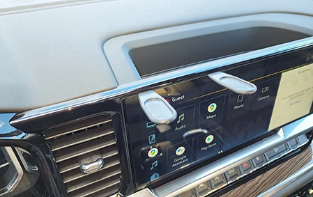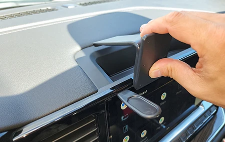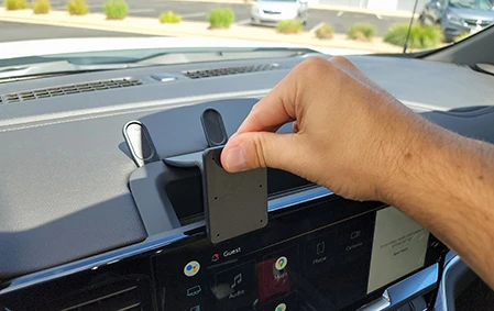 Press the thin end of the enclosed gap opener tools into the gap between the screen and the dashboard, to widen the gap. Leave enough room between the gap openers for the mount to fit.