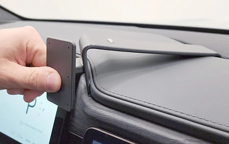 Use your fingers to gently pull the Proclip over the dashboard. The angled edge should slide into the seam between the soft part of the dashboard and the hard trim.
