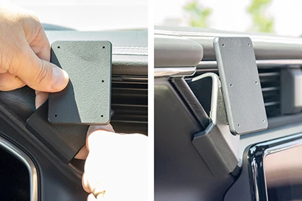The ProClip is car specific, it is customized for each car model and has a perfect fit. The ProClip offers a firm mounting platform and is available in multiple positions for most vehicles. Discreet design that blends in well with the interior. Safe, neat and convenient!