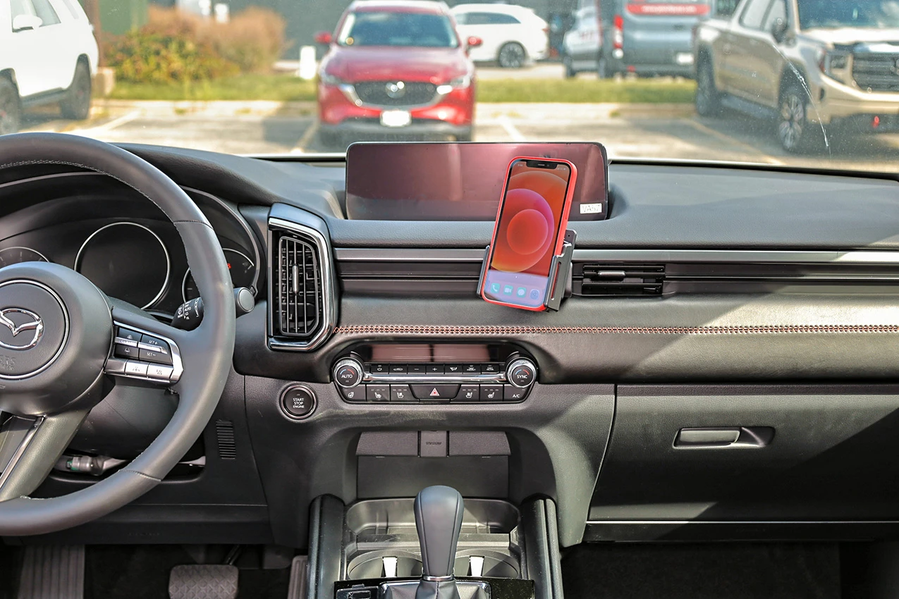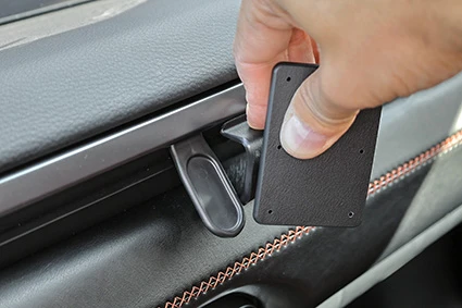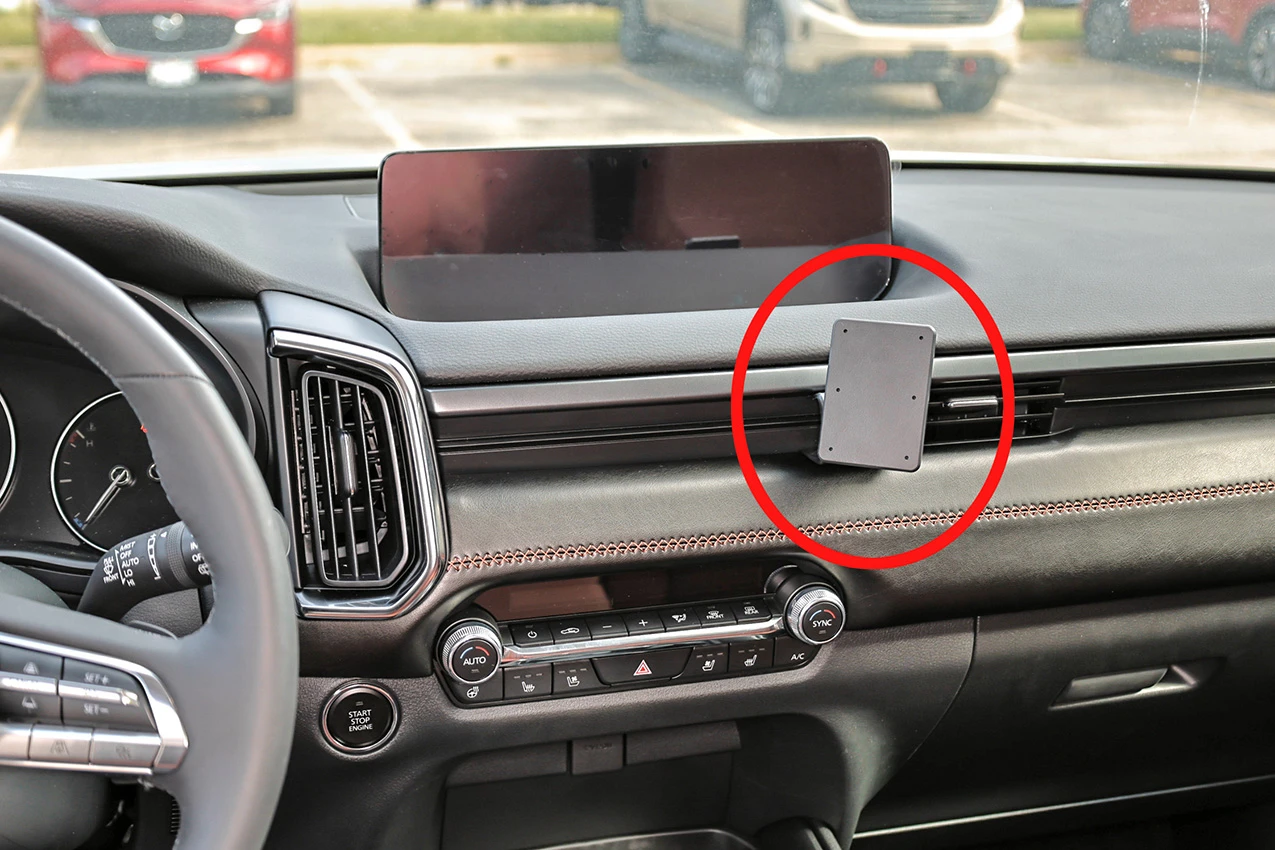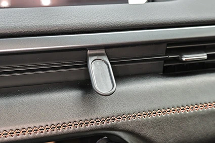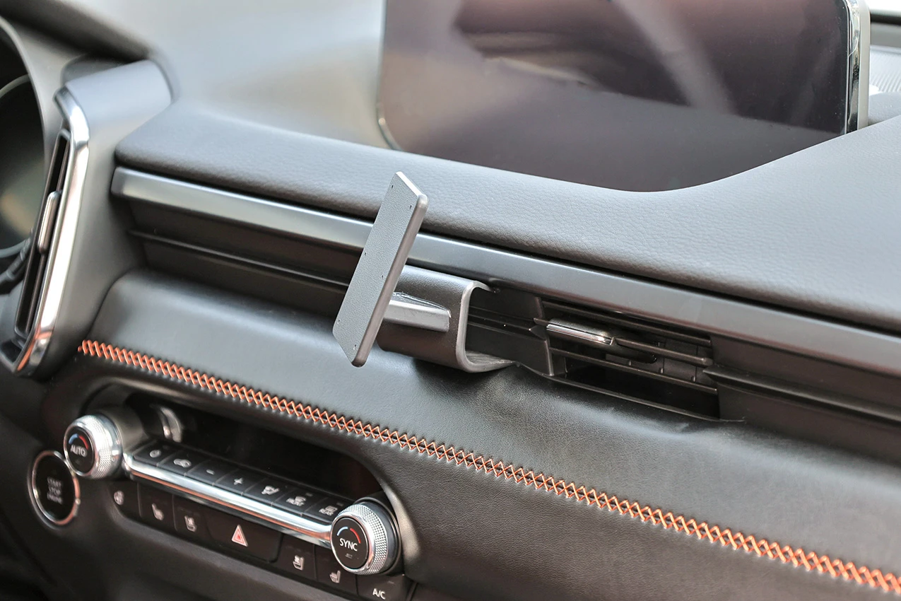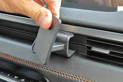 Place the lower edge of the mount into the gap between the dashboard trim and the air vent section.