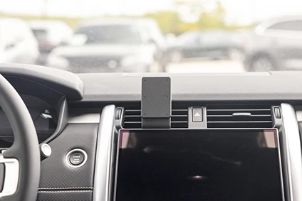 Press the mount downward and forward so the upper edge goes into the air vent housing.