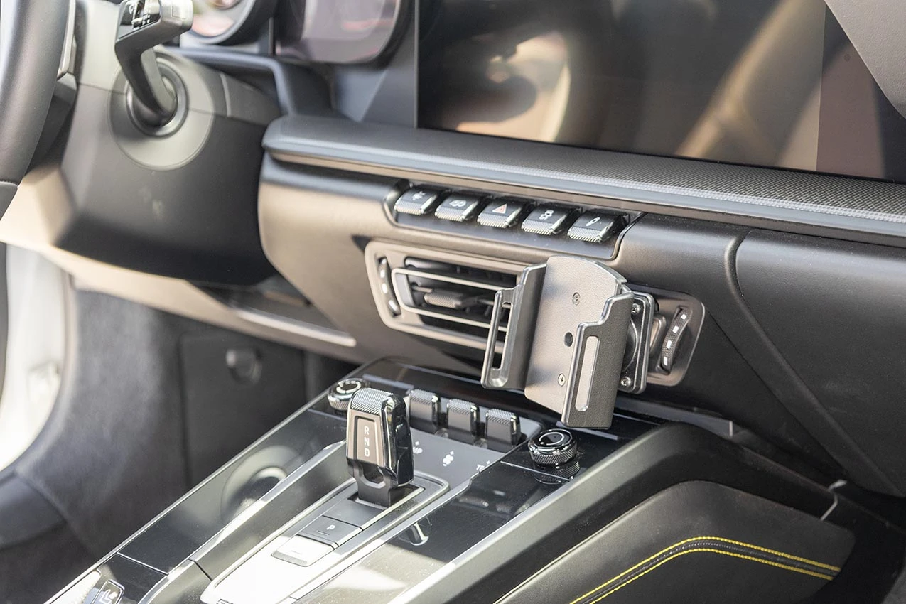 The ProClip is car specific, it is customized for each car model and has a perfect fit. The ProClip offers a firm mounting platform and is available in multiple positions for most vehicles. Discreet design that blends in well with the interior. Safe, neat and convenient!