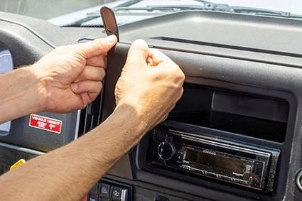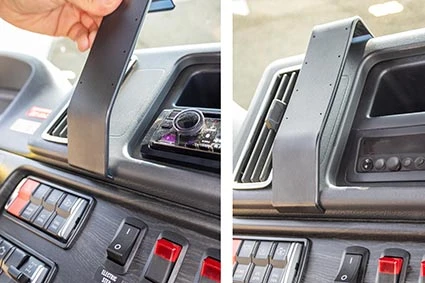Press the lower edge of the mount into the gap between the center panel and the dashboard. Press upward on the bottom of the mount so the edge goes all the way into the gap.