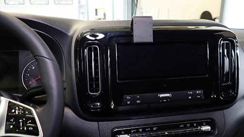 Pull the upper part of the mount upward and hook the upper edge into the gap between the control panel and the dashboard.