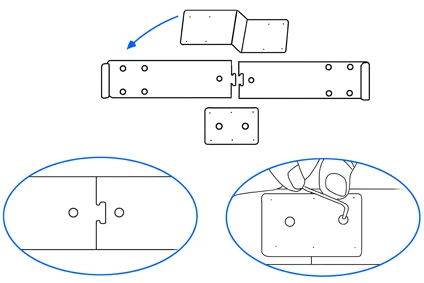 Fit the sides of the mount together. Place the joining plate on the mount and secure with the included screws.