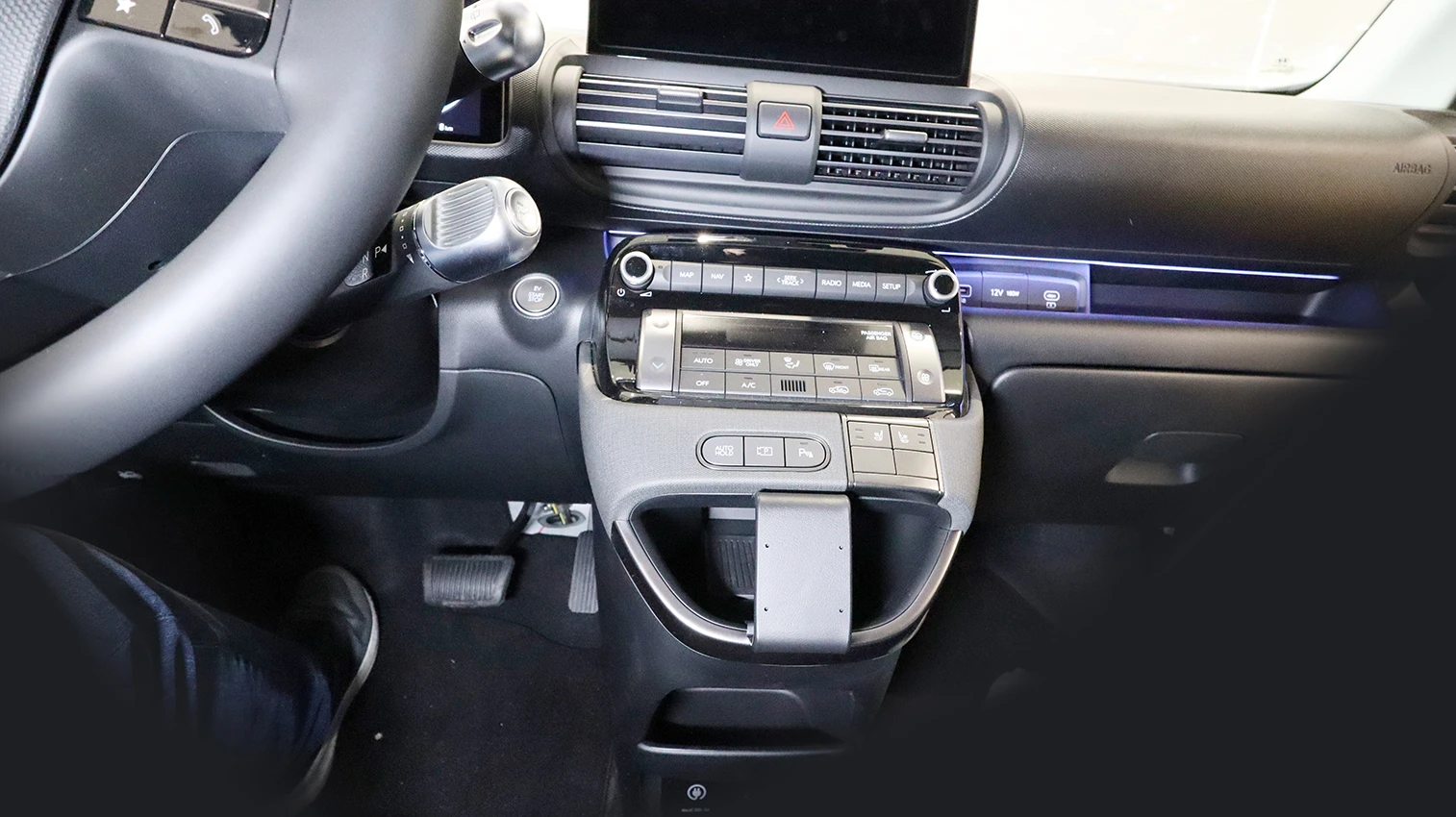 Press forward on the lower part of the mount and hook the angled edge into the gap between the console frame and the compartment. Pull out the gap opener.