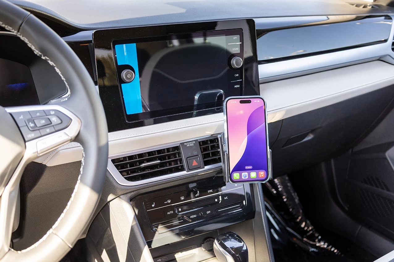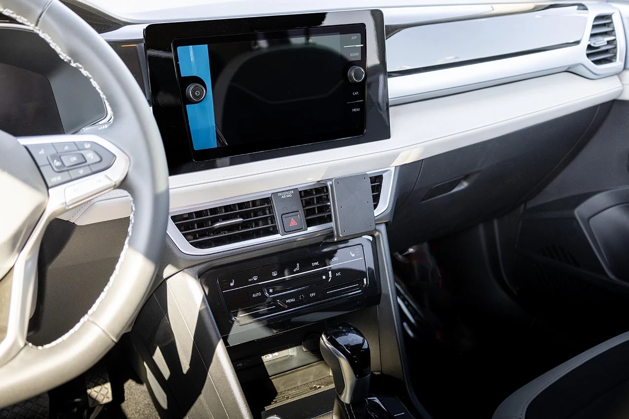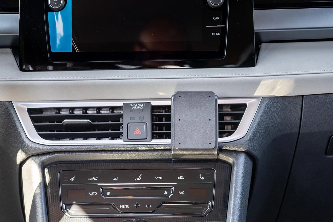 The ProClip mount is in place. The mount may be positioned as desired along the top of the climate controls.
