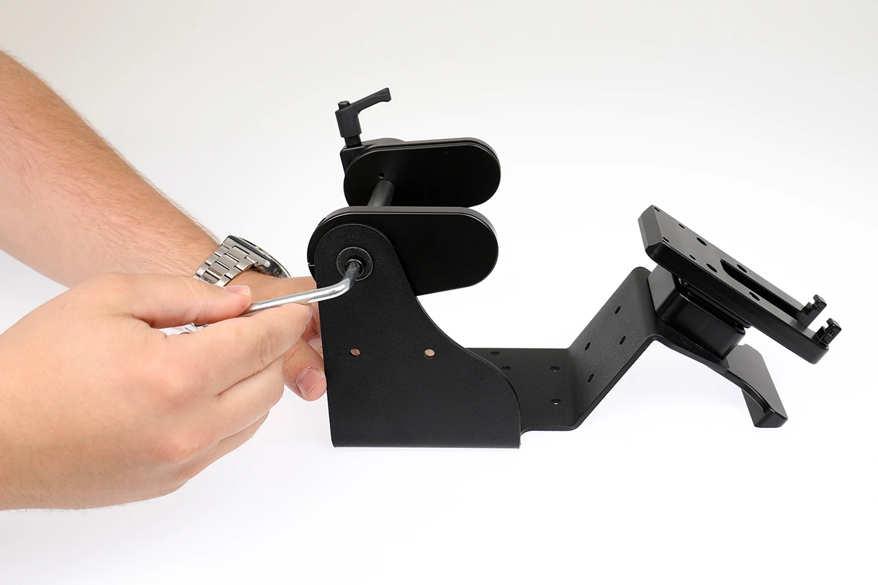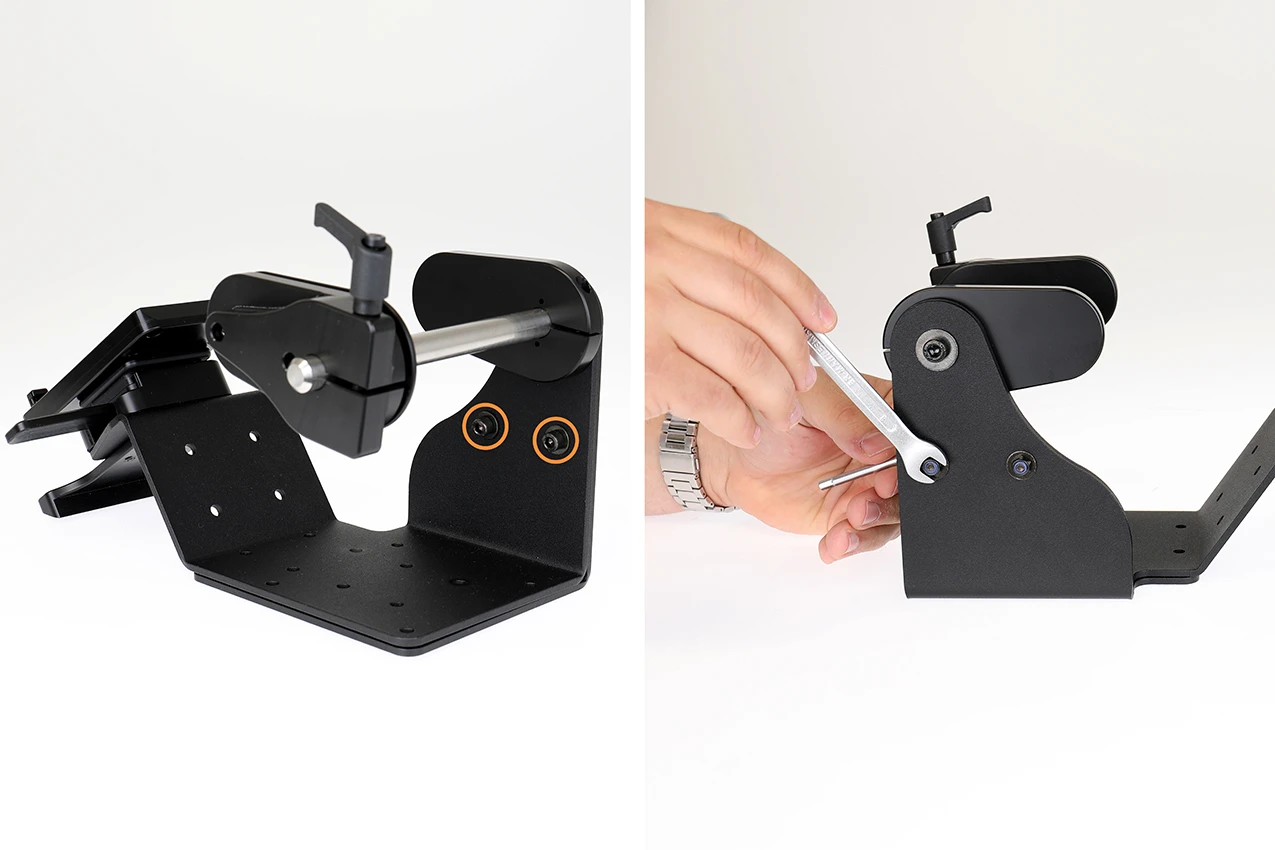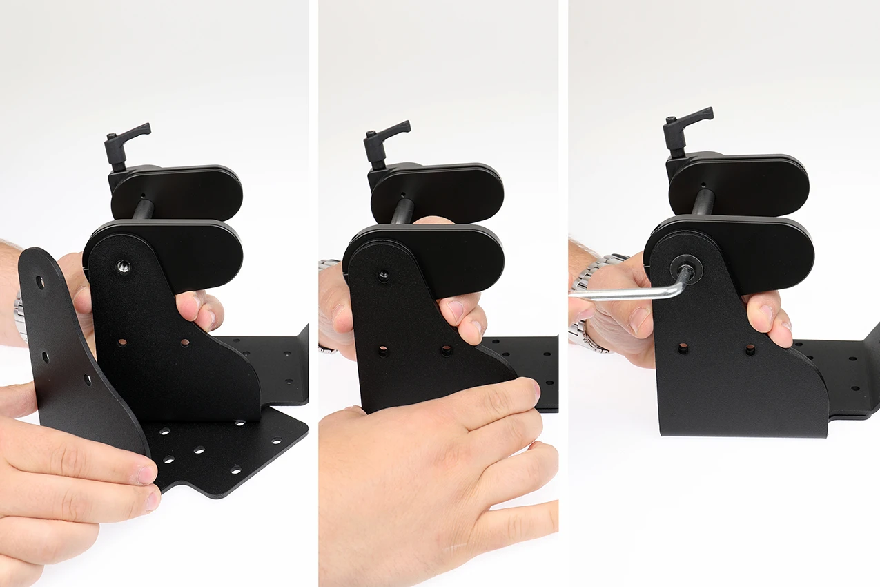Place the reinforcement plate against the holder and fasten it using the supplied screw. We recommend applying thread-locking fluid to the screw.