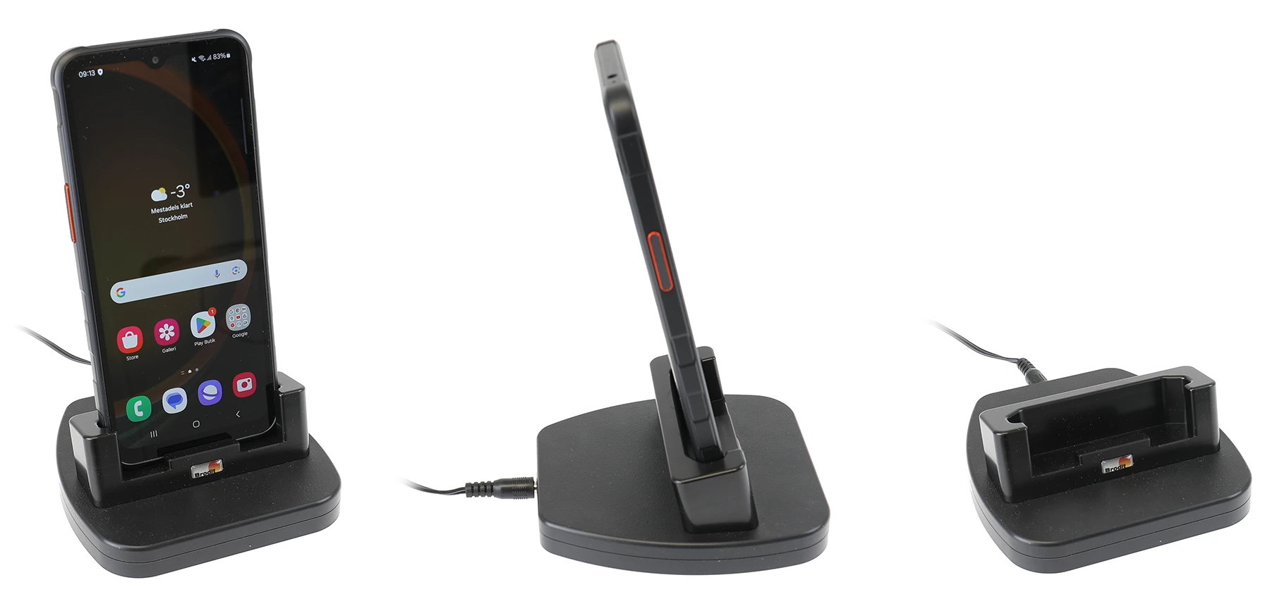 Start your workday with a freshly charged unit! This is the solution for you who want to have charging to your unit in the office.The tablestand offers a convenient charging solution and does not take much space. The device is easy to place into the tablestad. The charging starts automatically when you put the device in the stand.