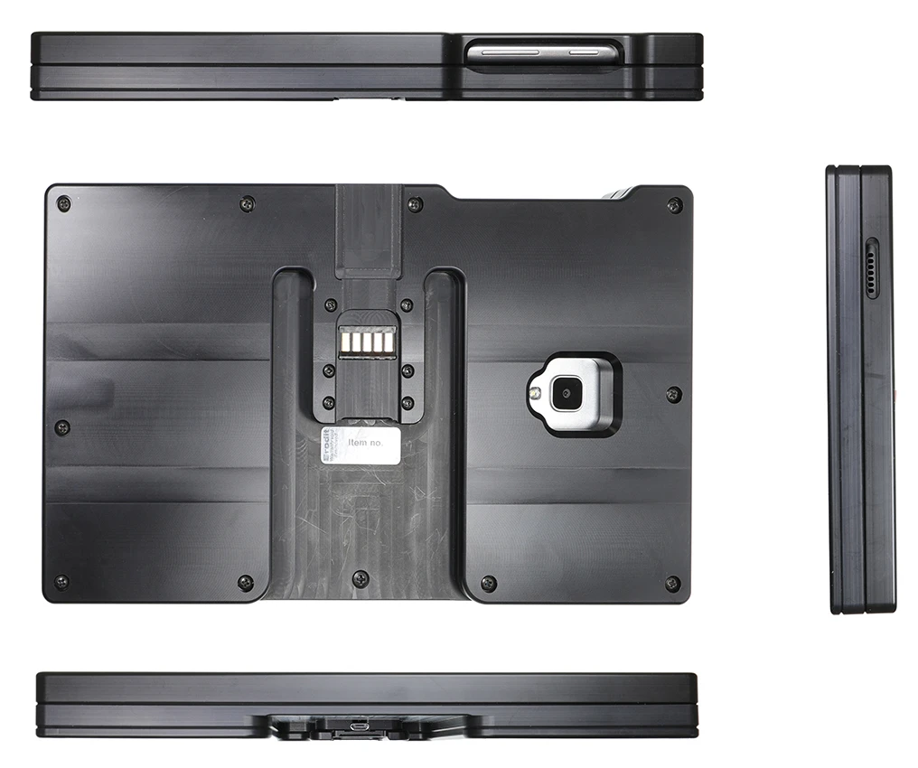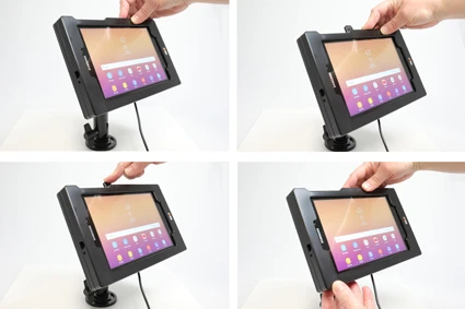 First you place your device in the tough sleeve, which is a slimmed version of a rubost case/jacket with built in bumpers (the Heavy Duty Tough Sleeve). The bumpers help to protect the device in case of minor bumps and drops. Then you attach the sleeve onto an active MultiMoveClip by pressing it downward onto the mount. When it snaps into place, the charging is automatically connected via the Sliding Power Block. Thanks to the quick connector, you also remove the sleeve from the MultiMoveClip in an instant. The charging connector is durable to withstand frequent wear in everyday professional use.
